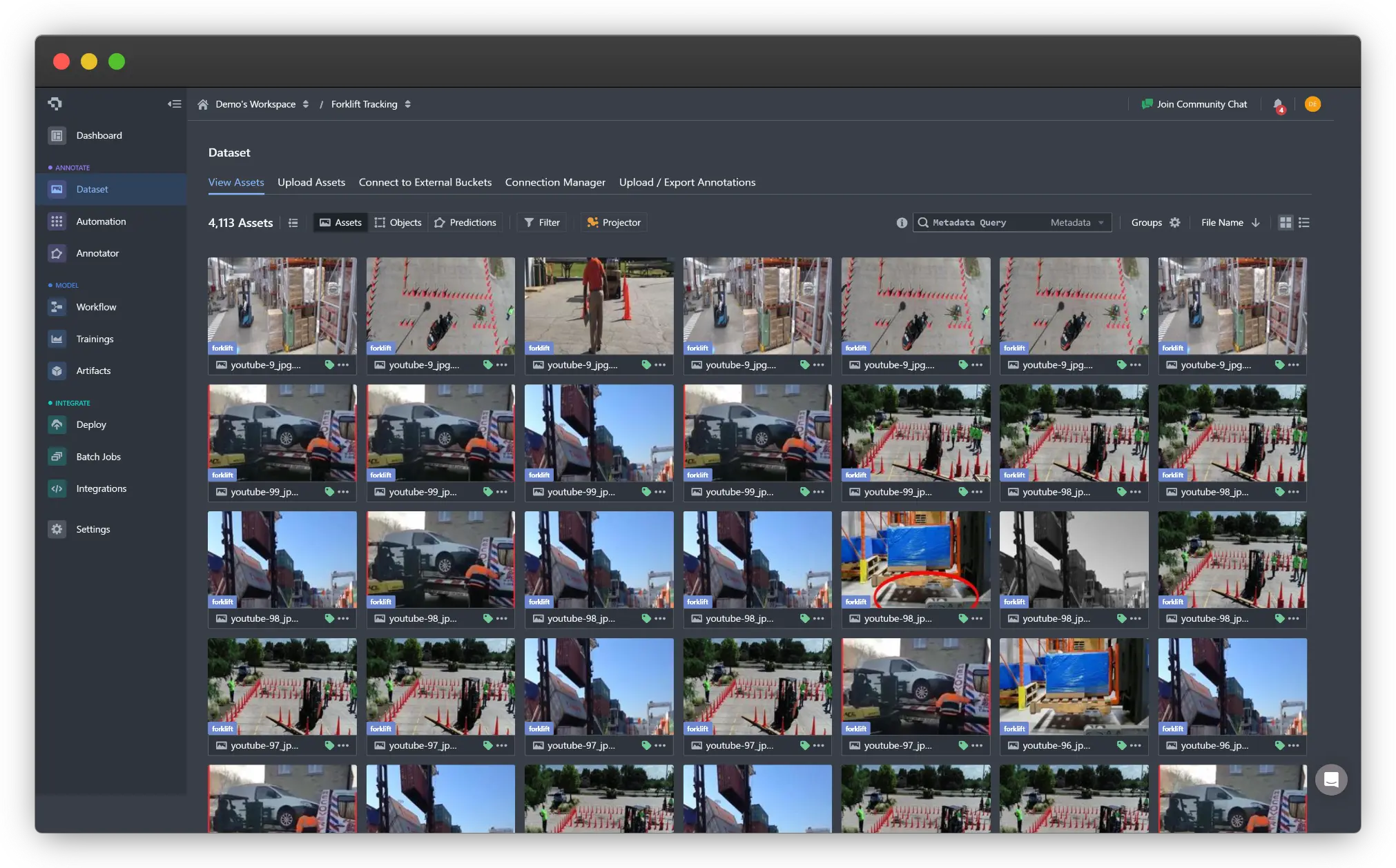 To onboard this data, one can simply just drag and drop the images in the Upload Assets tab on the Datasets page once they’ve been downloaded locally. To import the annotations, navigate to the Upload / Export Annotations and upload the annotations aligned with the format. To understand other alternatives for onboarding data, use this link.