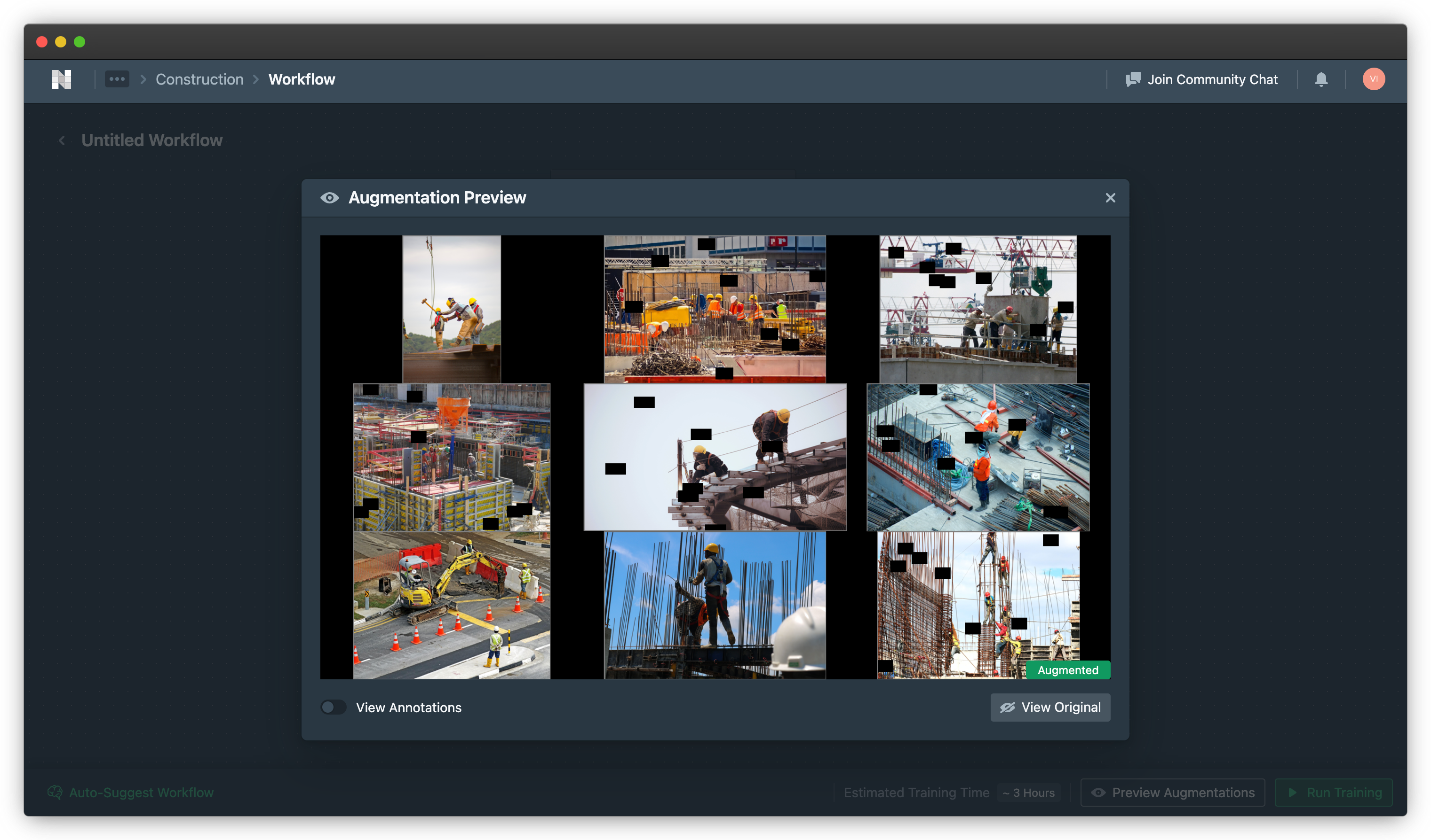 You should now see the various augmented images created by the tool. To compare the images with the original versions of your images, hover your mouse over the View Original button and you should now see the original version of your images: